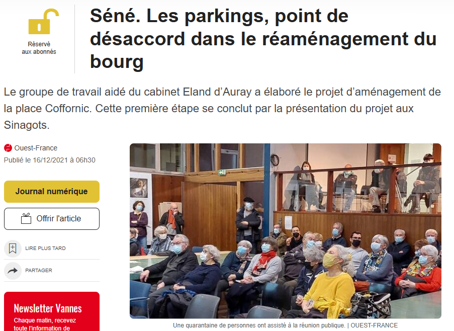 Ouest France / 1er juillet 2021 / Séné souhaite conserver la mainmise sur son PLU